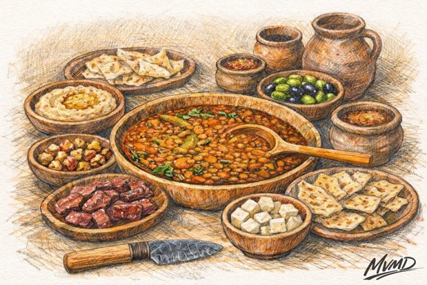 Legumes store exceptionally well and appear frequently in warehouses, caravan supplies, garrison rations, and slave provisions. They are boiled into thick stews, mashed into pastes similar to hummus or ful medames, or ground and mixed with grain flours to produce dense, sustaining foods.